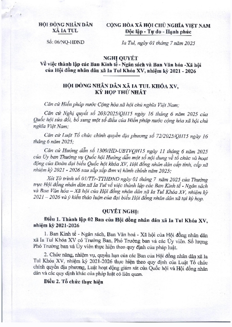| Tiêu đề văn bản | Nghị quyết 06 NQ HĐND về thanh lập các ban HĐND xã nhiệm kỳ 2021-2026 | ||