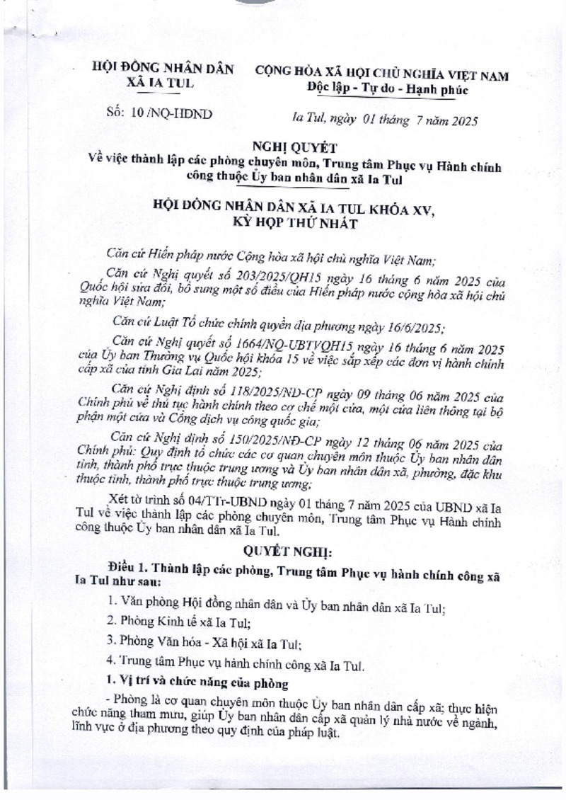 | Tiêu đề văn bản | ghị quyết thành lập các phòng chuyên môn, Trung tâm phục vụ hành chính công thuộc UBND xã | ||