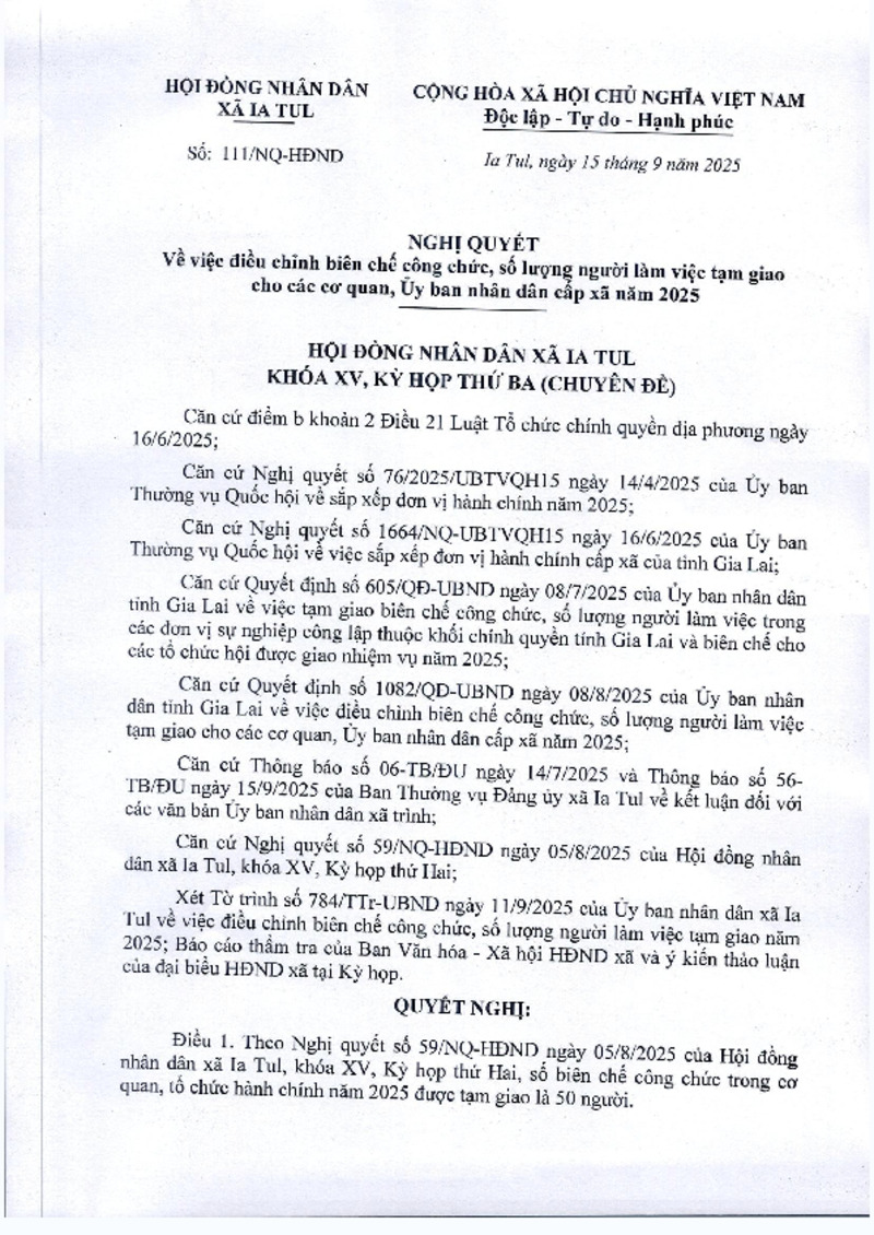 | Số hiệu | 111NQ HĐND | Cơ quan ban hành | Hội đồng nhân dân xã |