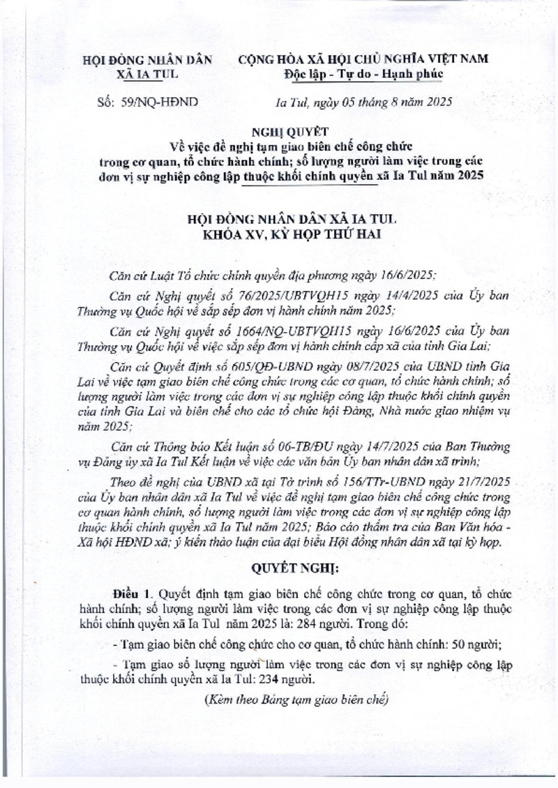 | Tiêu đề văn bản | NQ tạm giao biên chế công chức trong cơ quan, tổ chức hành chính, số lượng người làm việc trong các ĐVSN công lập thuộc khối chính quyền xã | ||