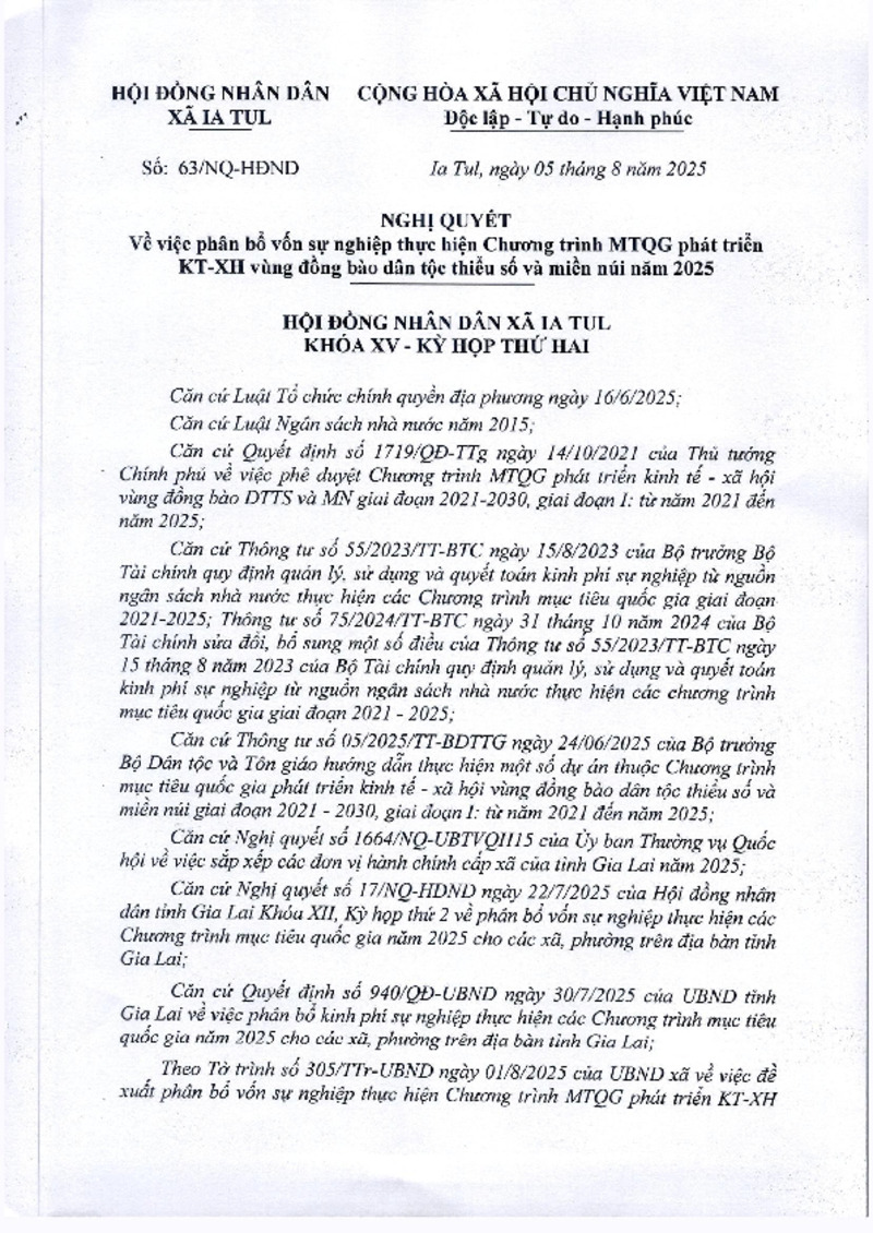 | Tiêu đề văn bản | NQ về việc phân bổ vốn sự nghiệp thực hiện Chương trình MTQG phát triển KT-XH vùng ĐBDTTS & MN năm 2025. | ||