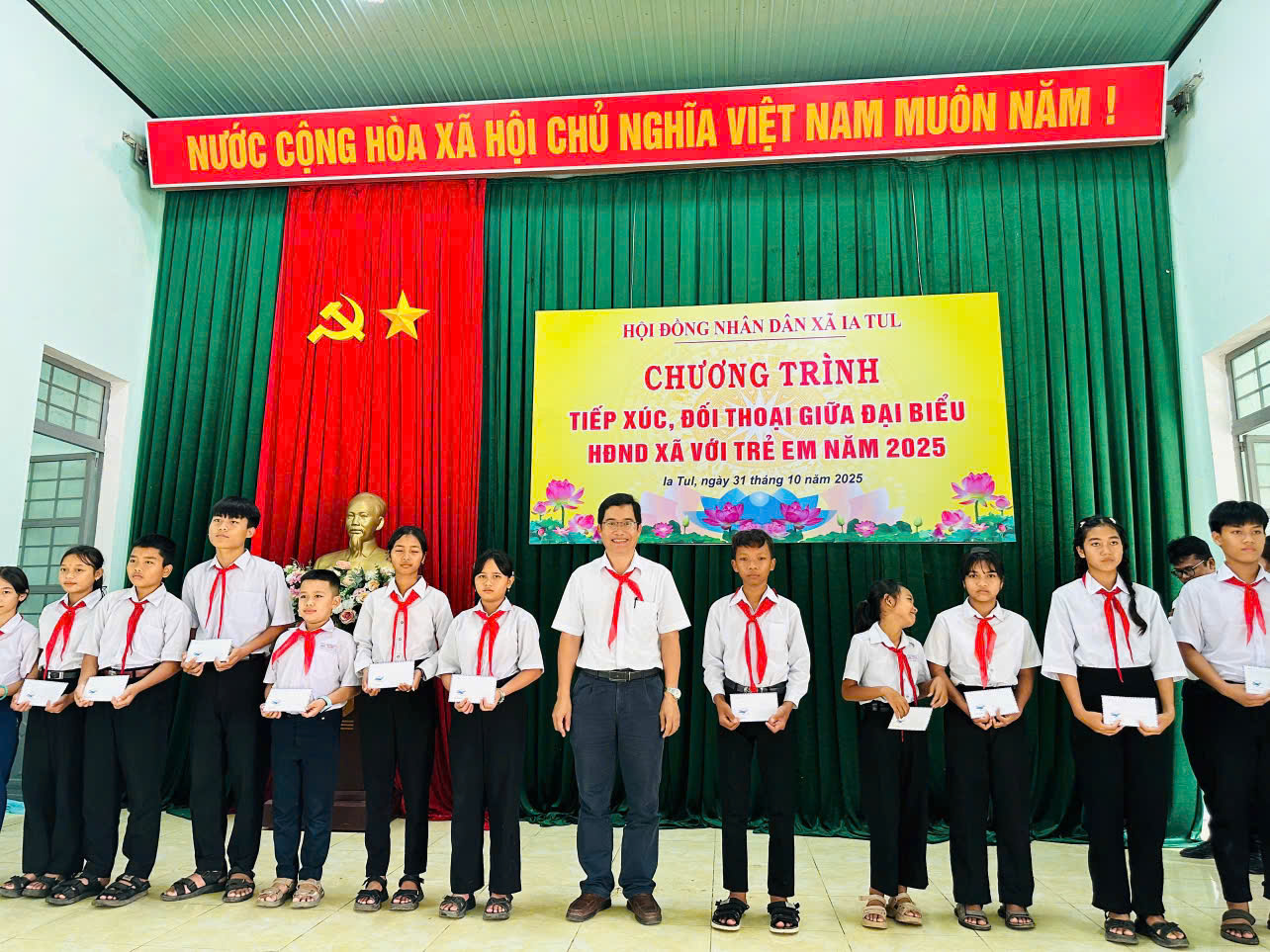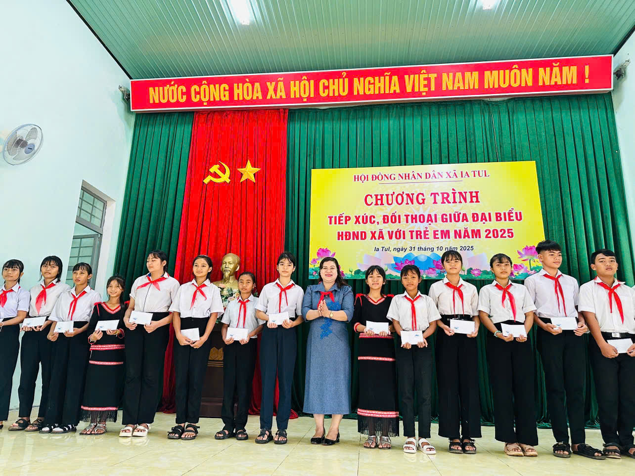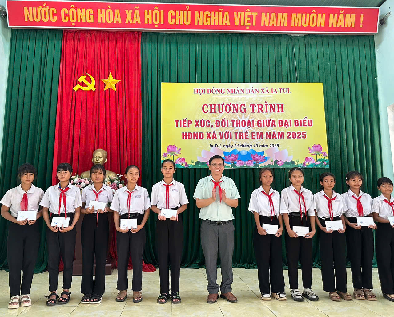 - Dịp này, HĐND xã Ia Tul đã tặng 40 suất quà cho các em học sinh tiêu biểu tham dự buổi tiếp xúc đối thoại.