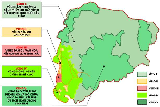 Vùng V: Vùng bảo tồn rừng phòng hộ và hồ chứa nước Ia Thul kết hợp du lịch nghỉ dưỡng sinh thái.