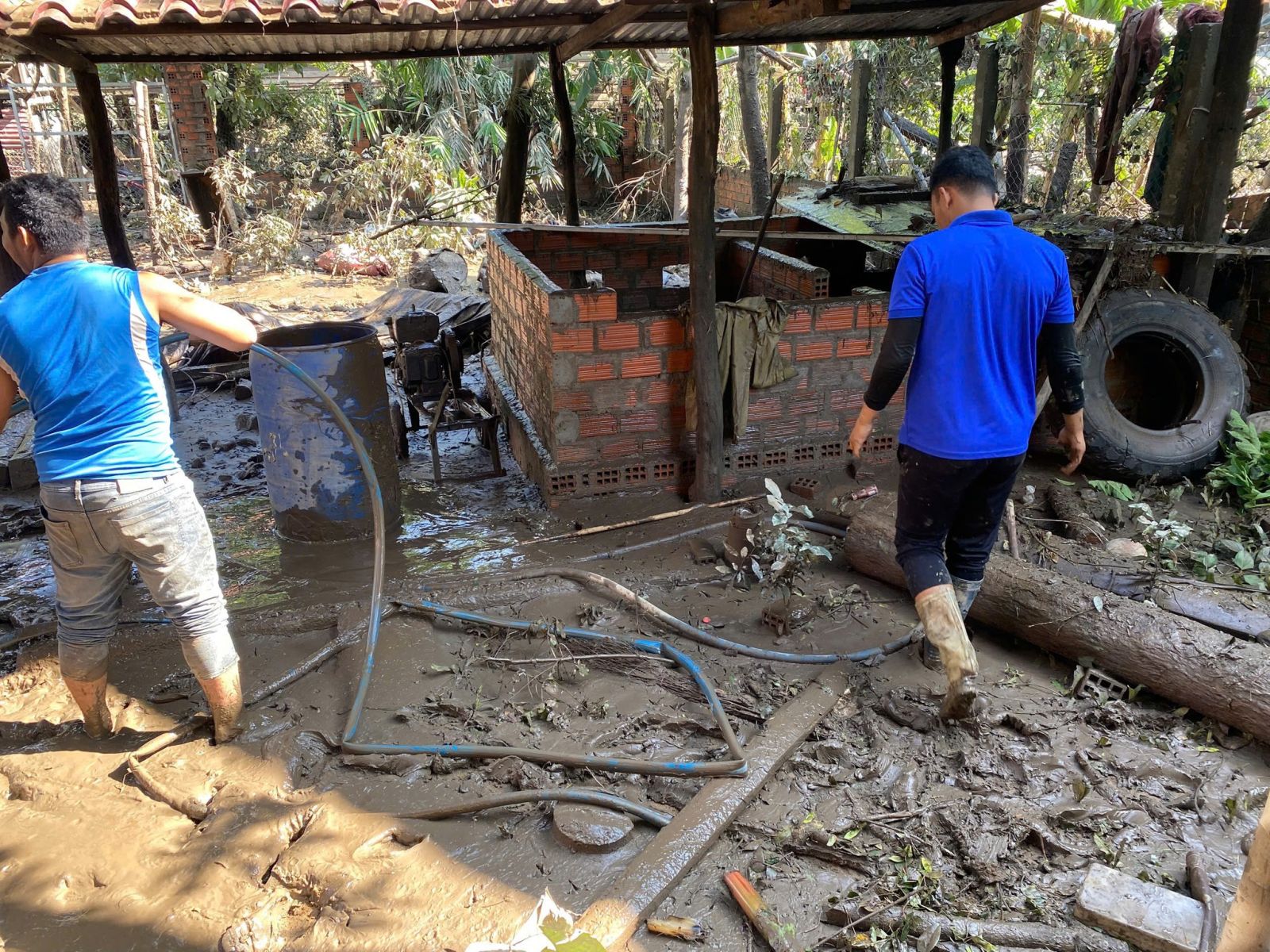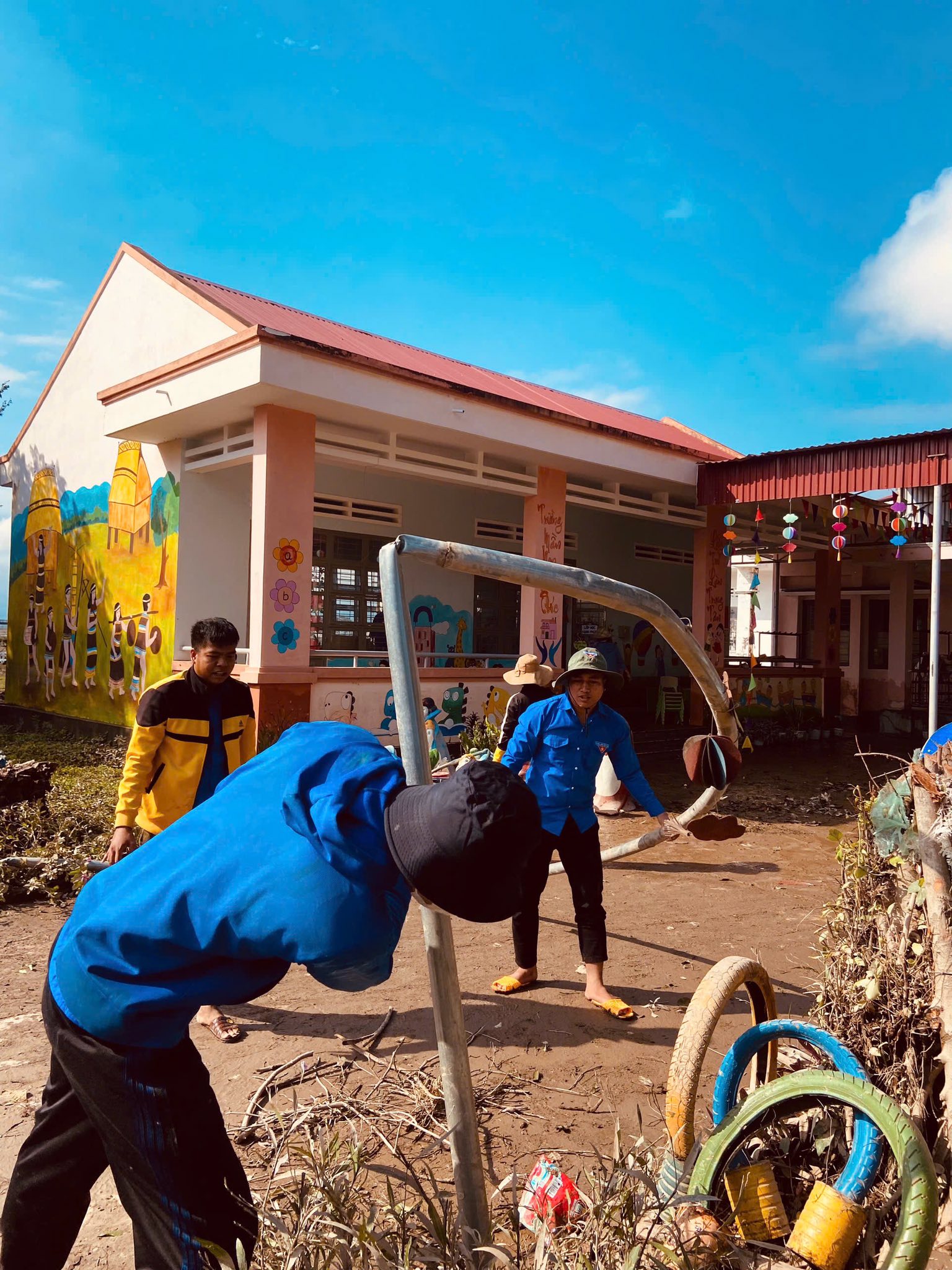 - Hiện nay, trên địa bàn xã, công tác giúp đỡ và hỗ trợ Nhân dân dọn dẹp nhà cửa, phát quang cành cây gãy đổ, sửa chữa, gia cố nhà cửa, phương tiện lao động, vận chuyển nhu yếu phẩm, dọn dẹp, vệ sinh các tuyến đường liên thôn, liên xã, đảm bảo giao thông phục vụ sinh hoạt và sản xuất của Nhân dân và công tác vệ sinh các trụ sở, phòng làm việc, trường học, trạm y tế ... đang đồng loạt diễn ra.